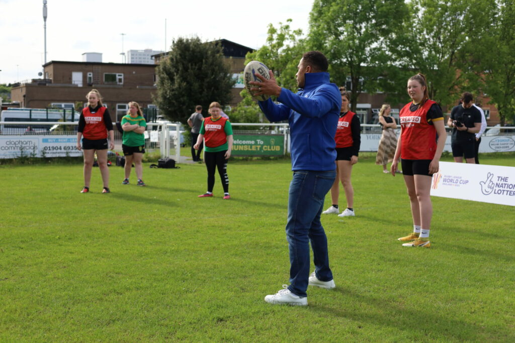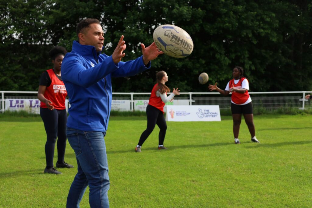 On May 18th, OBE, Jason Robinson returned to his hometown here in Leeds. Jason began coming to The Hunslet Club as a young child, where he took up rugby for the first time, and continued to prosper in the sport. He reminds us that young people in our community can achieve anything they set their mind to, as long as the opportunity is there to match their drive and determination. He revisited his home town and club in celebration of the CreatedBy funding awards that have been given to fund more opportunities for young people in and around South Leeds. These were given in collaboration with the Rugby League World Cup 2021 and The National Lottery. This funding is essential and guaranteed to make more quality sport sessions available to our local young people.